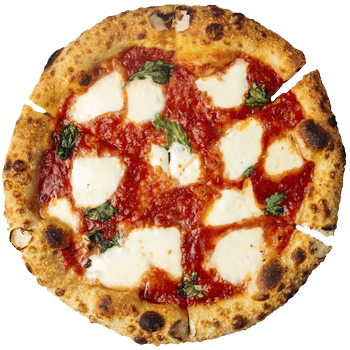 Autentisk og simpel men vidunderlig pizza med italiensk mozzarella og vores hjemmelavede tomatsauce.